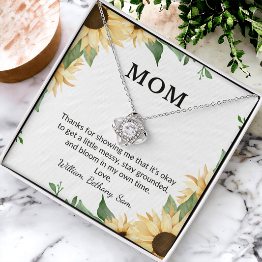 Personalized for Mothers- Thanks For Showing Me It's Okay To Get A Little Messy- Love Knot Necklace