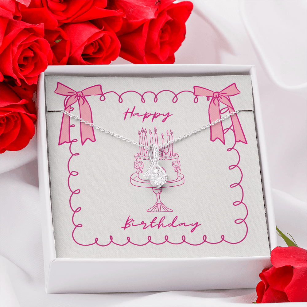 Happy Birthday- Pink Bows & Cake- Alluring Beauty Necklace