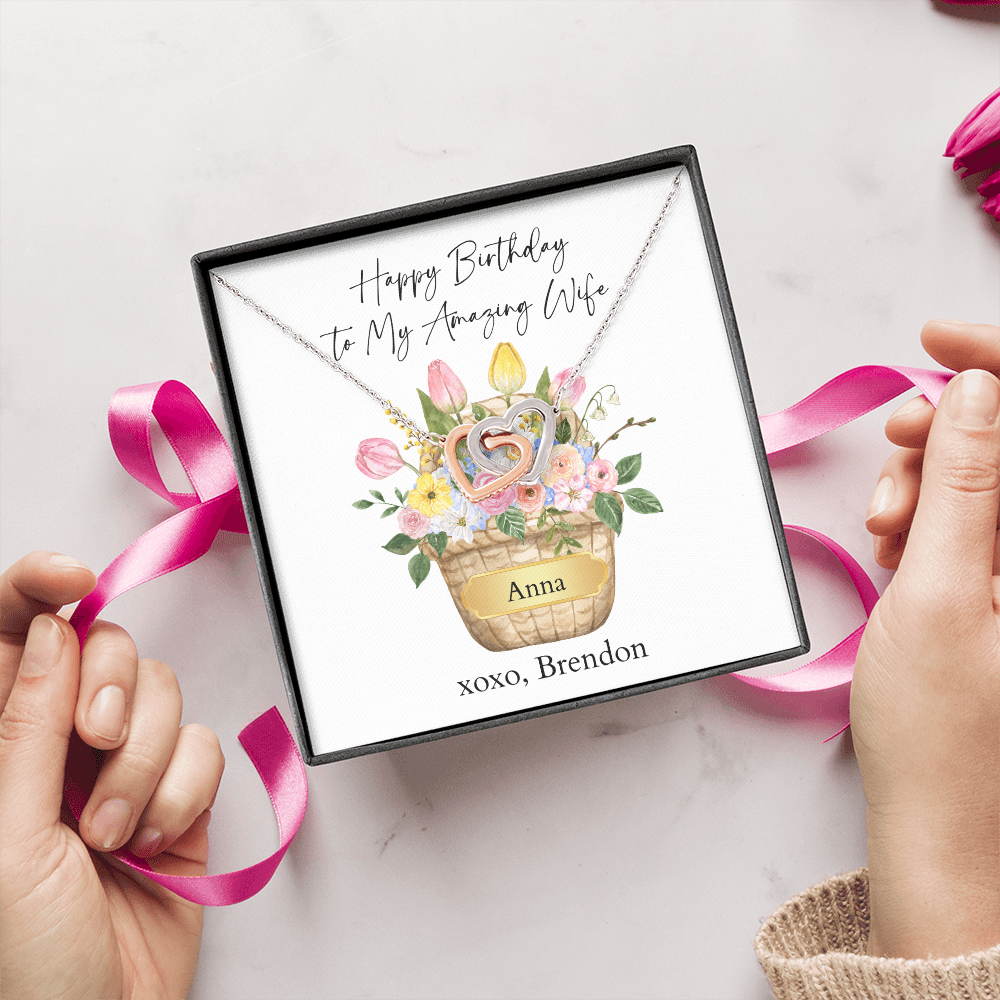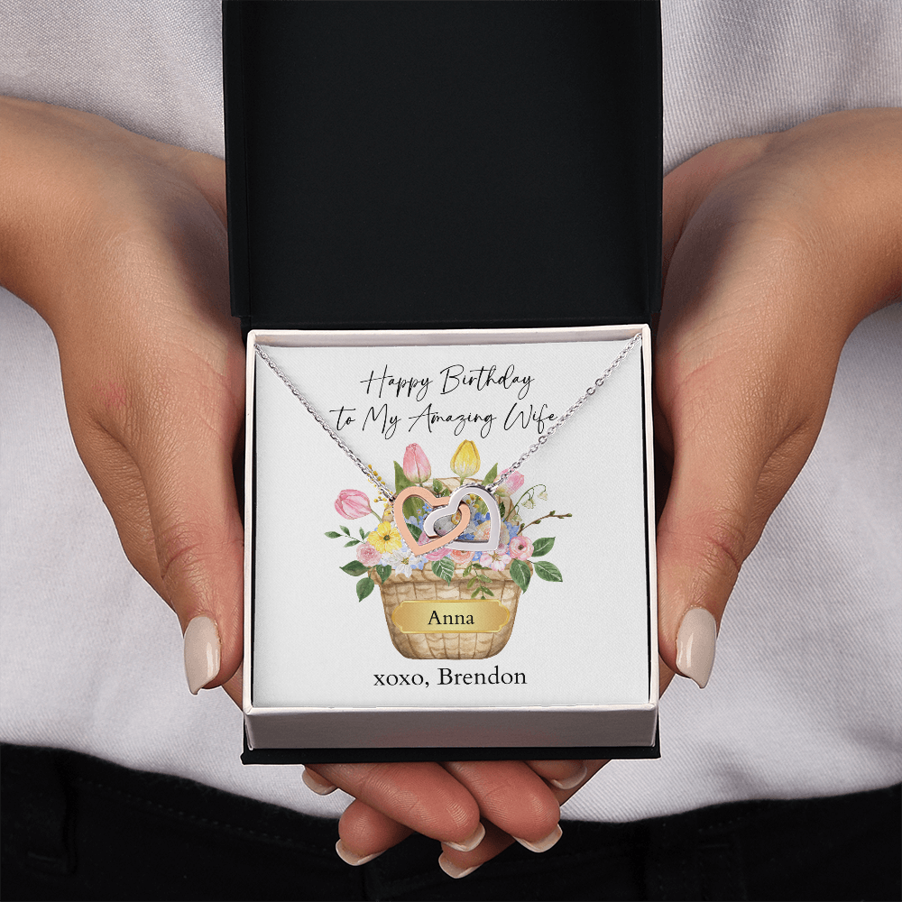 Personalized Happy Birthday- My Amazing Wife- Interlocking Hearts Necklace