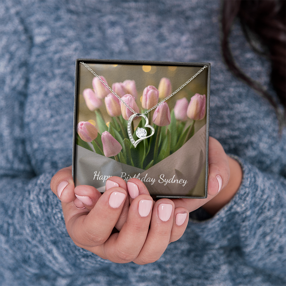 Personalized Happy Birthday- Pink Tulips- Forever Love Necklace