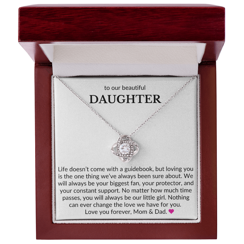 To Our Beautiful Daughter, From Mom & Dad- Life Doesn't Come With A Guidebook-Love Knot Necklace
